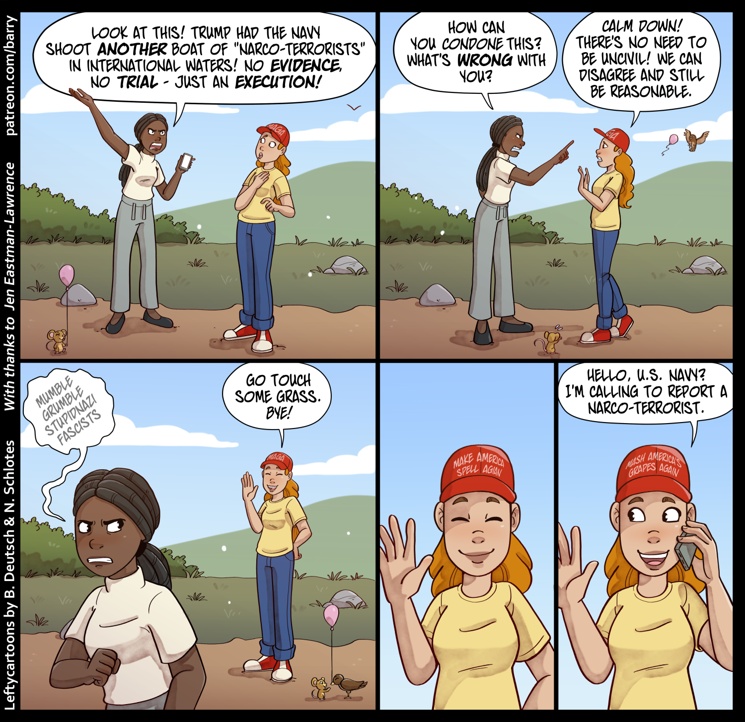 RED CAP: Calm down! There’s no need to be uncivil! We can disagree and still be reasonable.